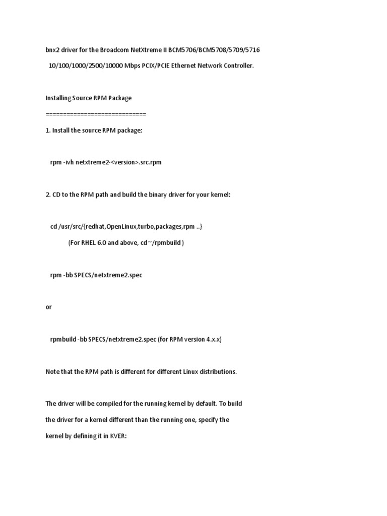 I set that parameter tonight. Posted October 11, Today's tip of the day: Thanks a bunch, Brian. Locate the rpm-build package on the Linux installation media and install it using the following command:. Is the one I attached above not working? Detailed statistics and configuration information can be viewed using the ethtool utility. Broadcoom Linux Driver Software.